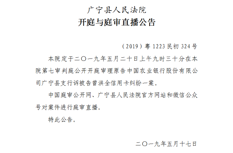 【广宁县人民法院开庭与庭审直播公告】5月17日3起案件公开开庭审理