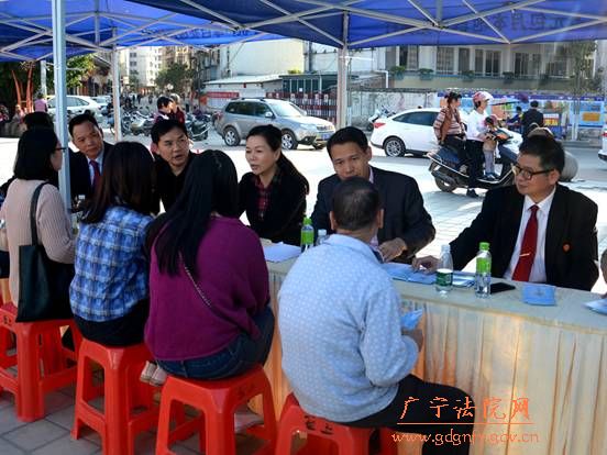 县法院作为协办单位之一,制作了成果展板和电视宣传片到场展出、播放,并由黎朝晖院长亲自带队,率分管民事、行政、执行等工作的副院长及相关审判部门的资深法官到场参加了活动,向群众宣讲法制、接受咨询。