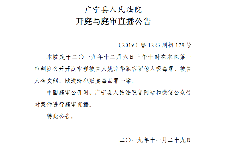 【广宁县人民法院开庭与庭审直播公告】12月6日3起案件公开开庭审理
