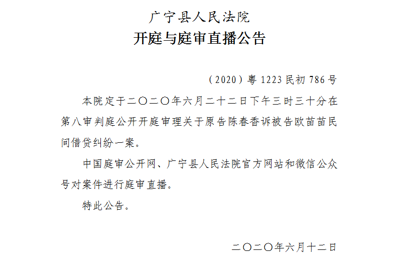 【广宁县人民法院开庭与庭审直播公告】6月22日4起案件公开开庭审理
