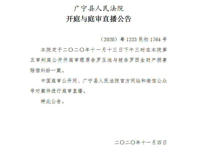 【广宁县人民法院开庭与庭审直播公告】11月16日4起案件公开开庭审理