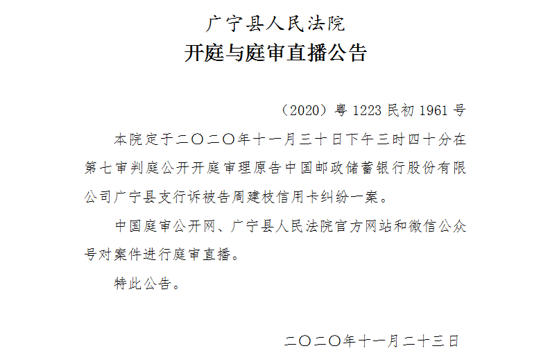【广宁县人民法院开庭与庭审直播公告】11月27日4起案件公开开庭审理