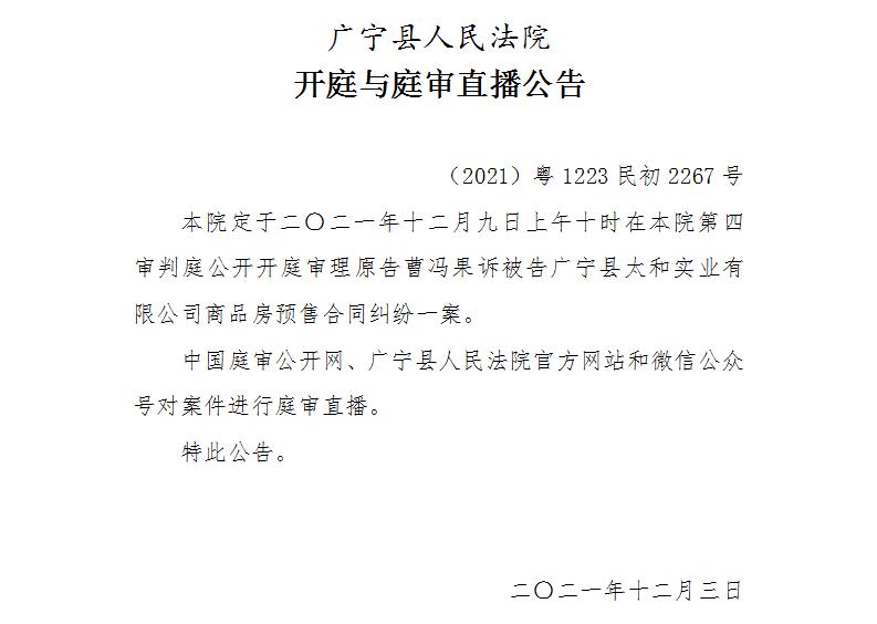 【开庭与庭审直播公告】12月8日4起案件公开开庭审理