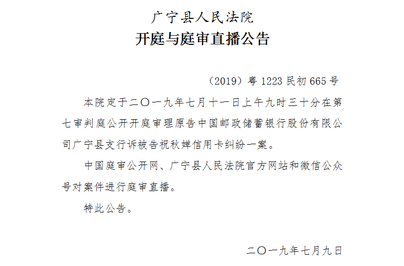 【广宁县人民法院开庭与庭审直播公告】7月12日3起案件公开开庭审理