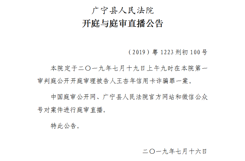 【广宁县人民法院开庭与庭审直播公告】7月19日9起案件公开开庭审理
