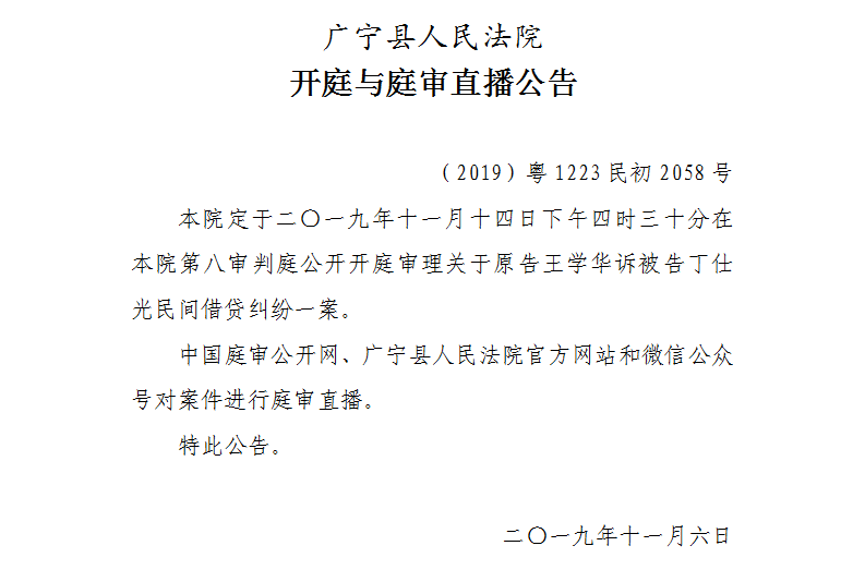 【广宁县人民法院开庭与庭审直播公告】11月14日6起案件公开开庭审理