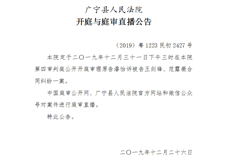 【广宁县人民法院开庭与庭审直播公告】1月2日1起案件公开开庭审理