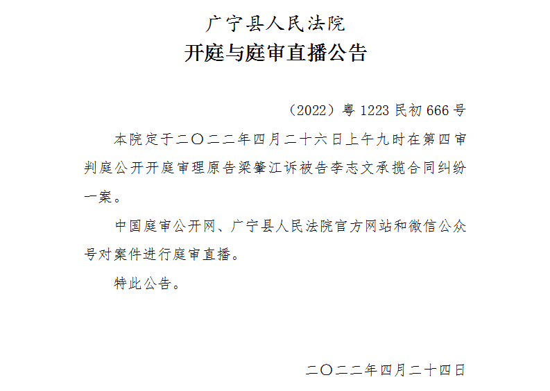 【开庭与庭审直播公告】4月24日3起案件公开开庭审理